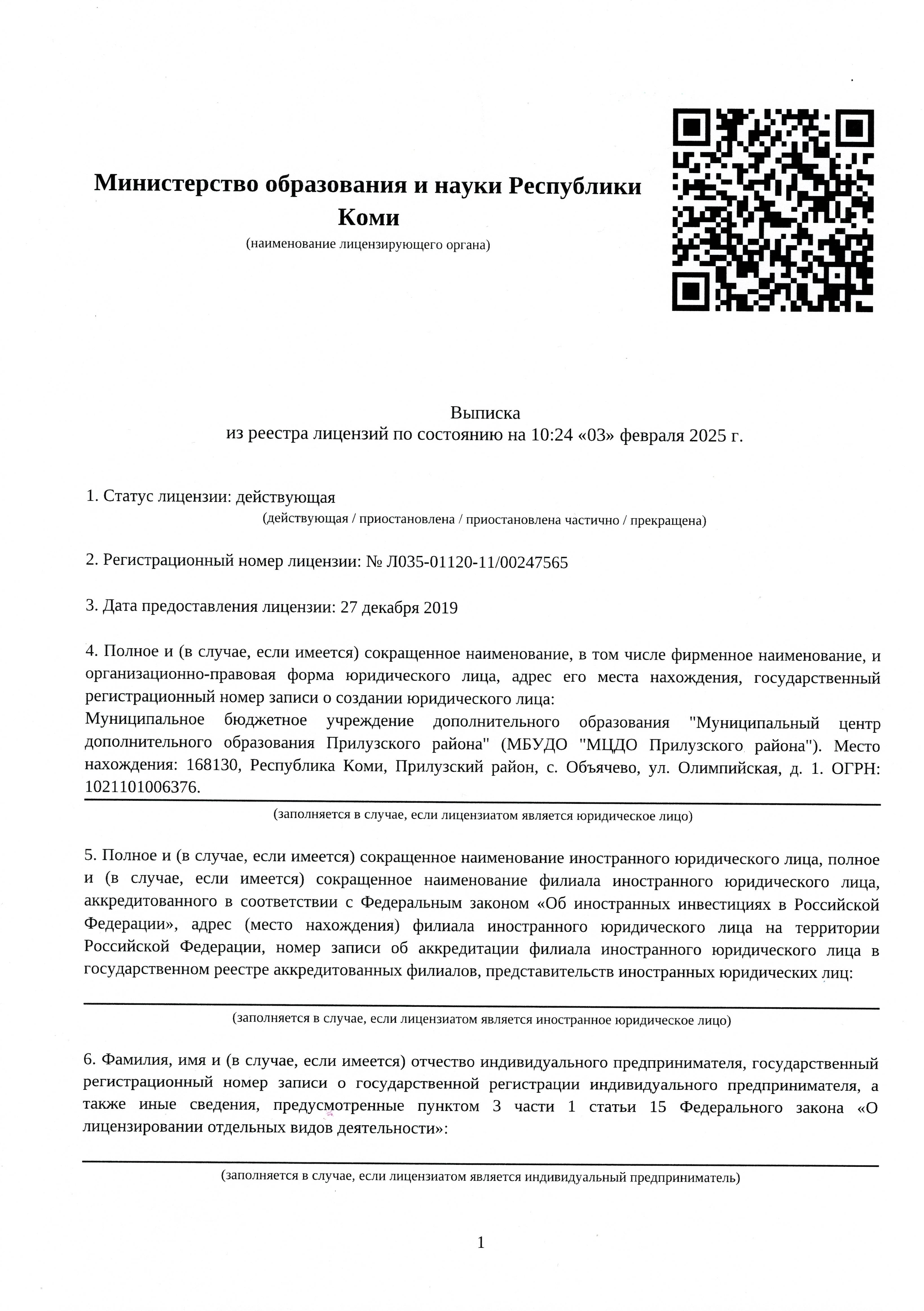 Выписка из реестра лицензий на 3 февраля 2025 г.
